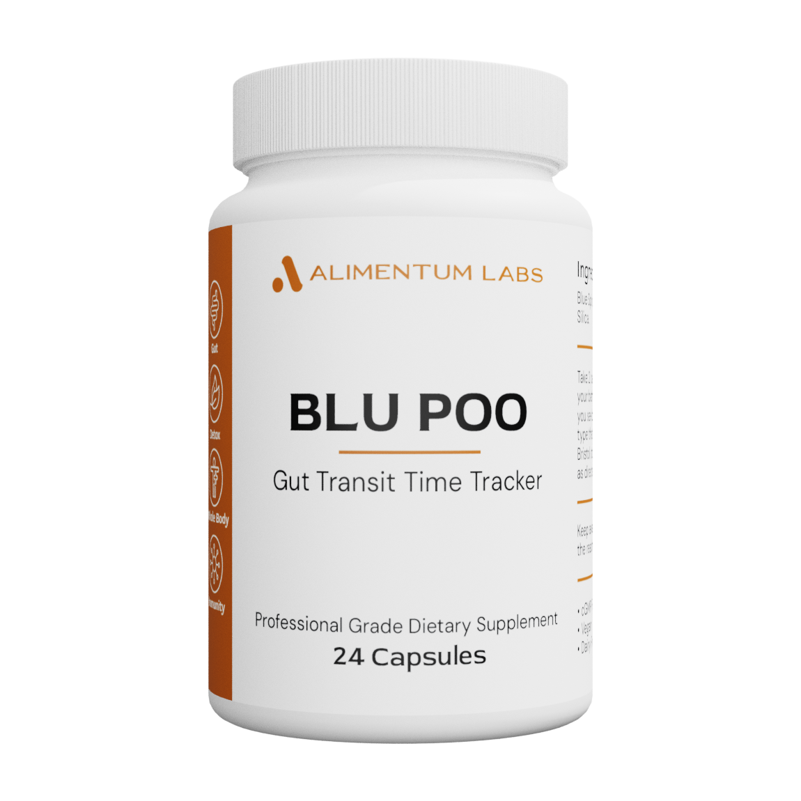 Alimentum Labs’ BLU POO Gut Transit Time Tracker is where science meets simplicity for a healthier you! BLU POO offers a scientifically-backed method to understanding your digestive health by determining the duration it takes for food to travel through your digestive tract, known as your gut transit time. Using a natural pigment derived from blue spirulina, BLU POO colors your ingested food, resulting in vibrant blue-colored stool to track your gut transit time with ease. By tracking gut transit time, BLU POO provides invaluable insights into your body’s digestion process, nutrient absorption, fiber metabolism, and the overall health of your gut microbiome. Seamlessly integrated with the Bristol Stool Chart, BLU POO enables you to assess your stool consistency, empowering you to identify potential microbiome dysbiosis and take proactive steps towards achieving optimal digestive wellness. This simple, yet effective product not only helps you monitor your gut health, it provides you with indispensable information that helps you to transform it.