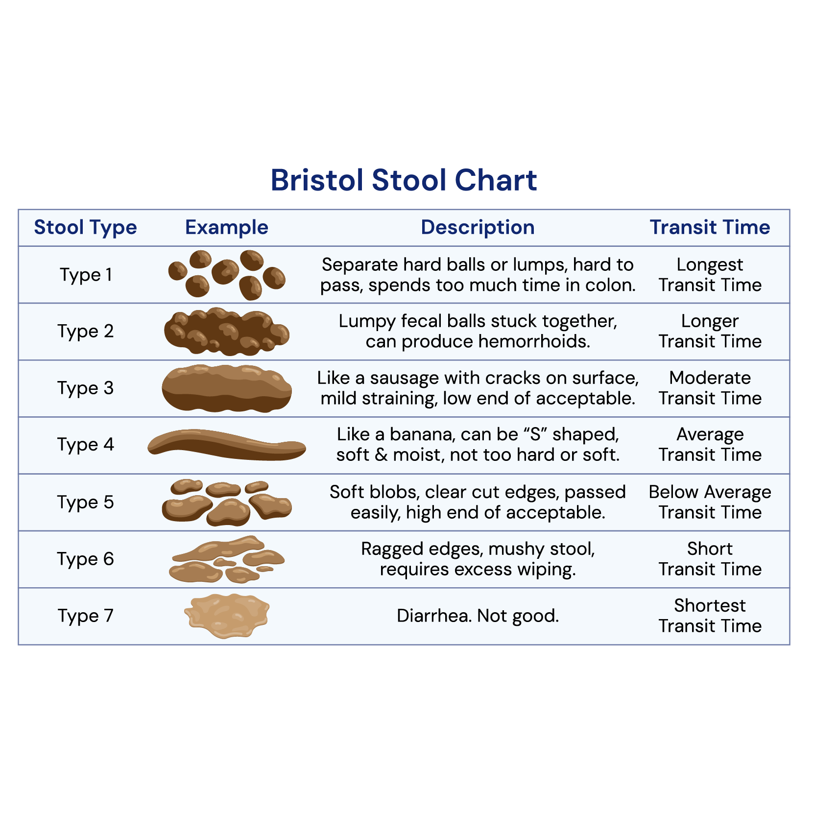 While there isn’t a single “ideal” gut transit time that applies to everyone, it is suggested that transit times less than 18 hours or more than 30 hours along with Bristol stool types 1, 2, 5, 6, and 7 may indicate dysbiosis or other digestive issues. Knowing your individual gut transit time is important for several reasons, including understanding how effectively your digestive system is functioning. This information can help identify potential digestive issues such as constipation, diarrhea, or irregular bowel movements. Additionally, tracking gut transit time can offer valuable insights into your overall digestive health, nutrient absorption, and the balance of your gut microbiome. By knowing your gut transit time, you can make informed decisions about your diet, lifestyle, and digestive wellness that can heavily influence your overall health.