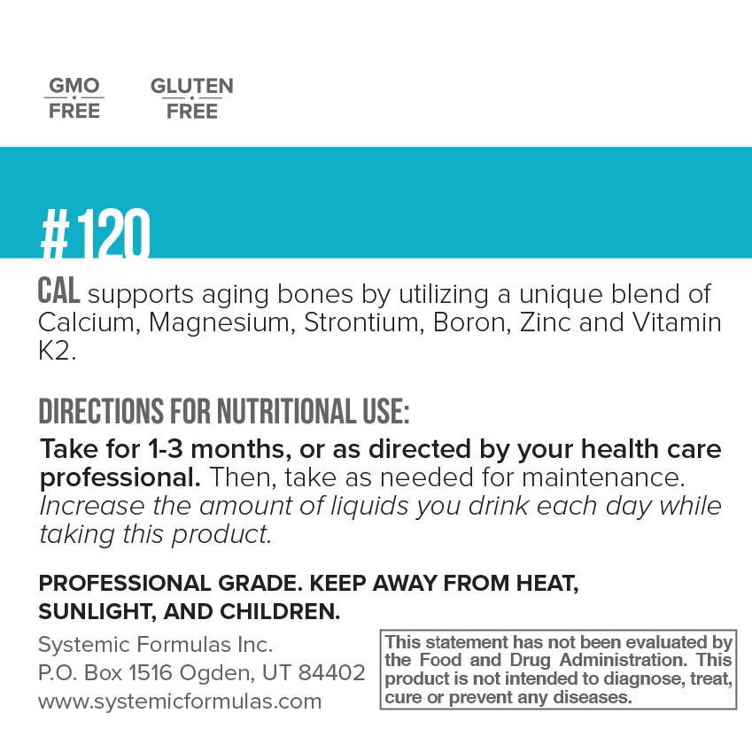 CAL features highly bioavailable calcium malate and citrate, which are easily absorbed even in individuals with low stomach acid. It also includes magnesium malate and citrate, vitamin D3, vitamin K2, and essential trace minerals like zinc, manganese, strontium, and boron to ensure optimal calcium utilization and bone health.