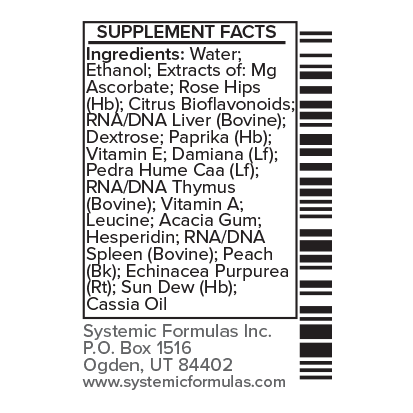 CXACX contains a blend of herbs, vitamins, and tissue factors that help enhance liver function, particularly in the left lobe. Ingredients such as echinacea and vitamin A promote liver health, while citrus bioflavonoids and vitamin C support antioxidant activity to protect liver cells from oxidative stress.
