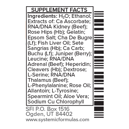 - CXK – Kidney provides essential nucleic acids that support the repair and restoration of kidney, adrenal, and thalamus function. These RNA/DNA tissue factors facilitate enzyme activity, intracellular metabolism, and gene transcription necessary for maintaining renal health. By rejuvenating the Kidney-Adrenal-Thalamus triad, this formula promotes key physiological functions such as waste filtration, blood pressure regulation, red blood cell production, and pH balance.