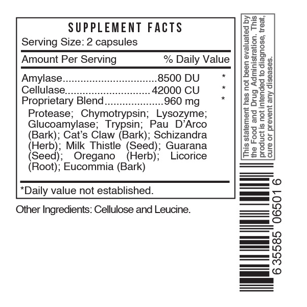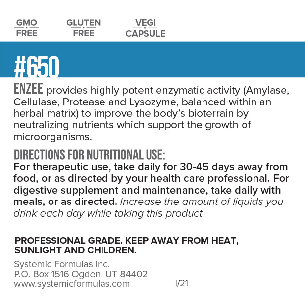 Enzee is a potent, herbal-based enzyme formula designed to support the body’s natural digestive and detoxification processes. It features a comprehensive blend of enzymes, including amylase, cellulase, and proteases, to effectively break down carbohydrates, fats, and proteins, contributing to a clean and healthy extracellular matrix. This formula goes beyond basic digestion by focusing on supporting the body’s immune response to fungal organisms and providing liver support. Cellulase facilitates the breakdown of plant cell walls, unlocking valuable nucleic acids and nutrients. Additionally, Enzee includes ingredients like pau d’arco and cat’s claw, known for their immune-supporting properties, and proteases that act as “biofilm busters” to disrupt unwanted microbial colonies. The inclusion of these components, alongside the digestive enzymes, makes Enzee a well-rounded formula for supporting overall digestive health, immune function, and cellular detoxification.
