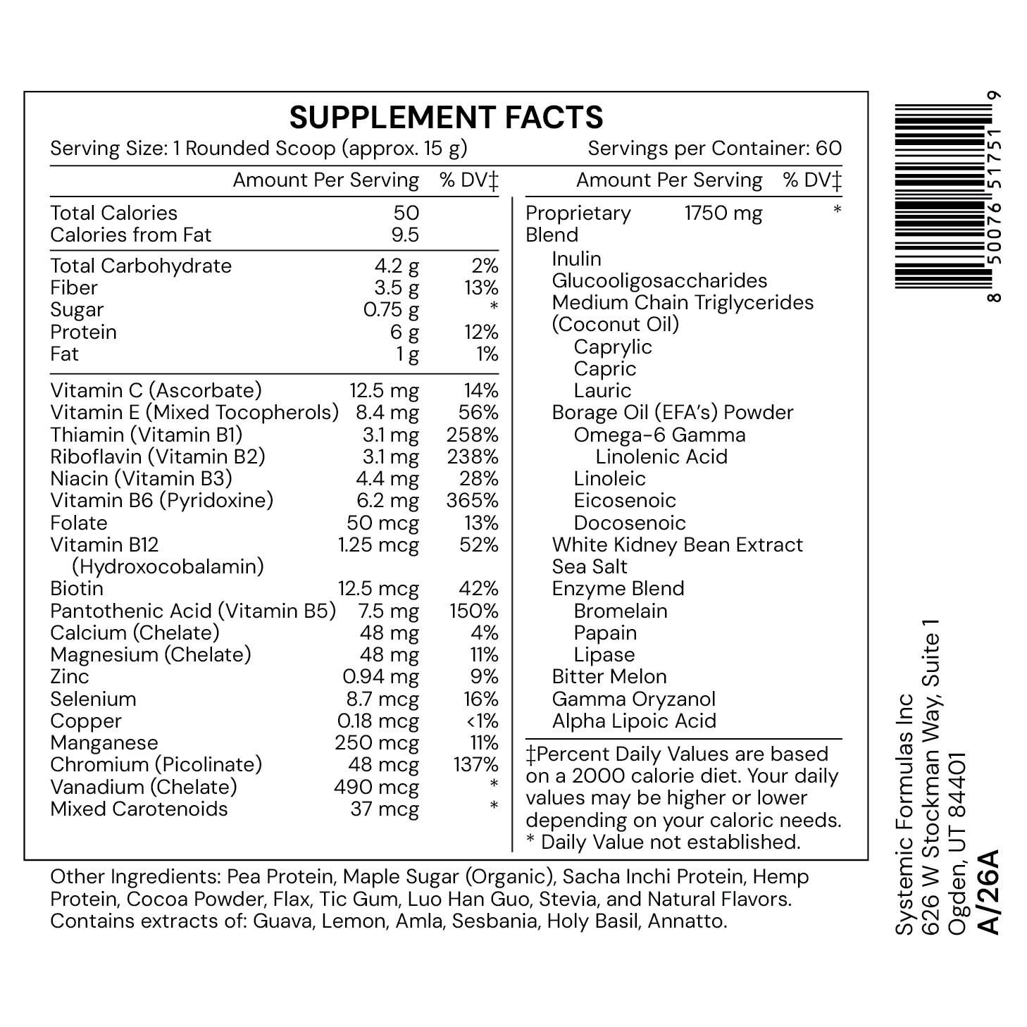 - Plant, whole food vitamins & minerals