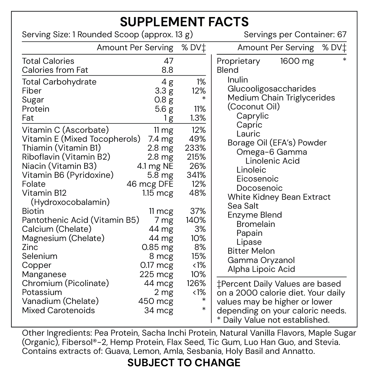 Metabo-Shake is a nutrient-dense metabolic formula designed to support healthy glucose metabolism and overall well-being. It provides a comprehensive blend of macro and micronutrients, aiding in weight management, cardiovascular health, and improved dietary intake. It helps to support balanced glucose through supporting the pancreas.