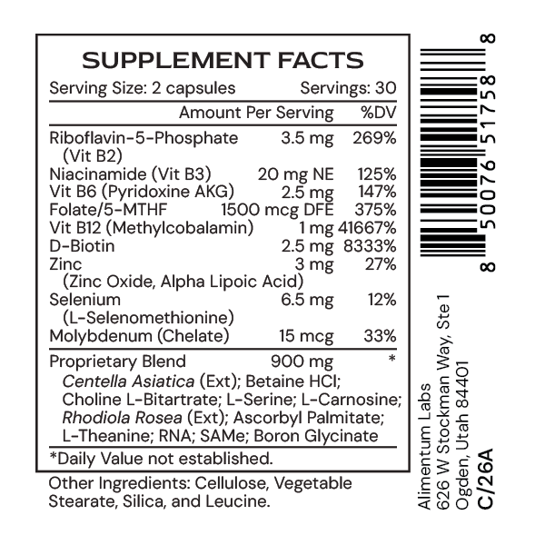 Beyond methylation and cellular anti-aging support, it effectively manages homocysteine levels to promote cardiovascular and cognitive health, while also supporting neurotransmitter production for enhanced neurological functions.