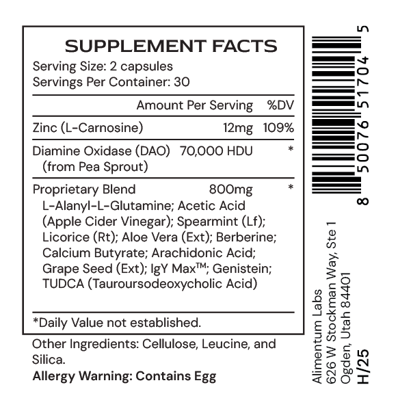 MucosaGenic is Alimentum Labs’ breakthrough Gut Lining Restorer, meticulously formulated to repair and maintain the integrity of the intestinal and mucosal lining. Addressing the prevalent issue of intestinal permeability, commonly known as ‘leaky gut,’ MucosaGenic acts as a barrier, preventing harmful substances from crossing into the bloodstream and triggering necessary inflammatory responses.