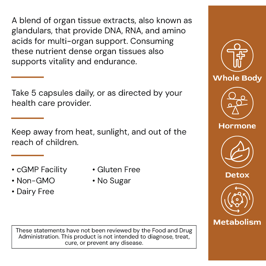 By embracing the nutritional potential of organ tissues, OrganGenic empowers you to fortify your body against various health concerns, from adrenal fatigue to thyroid dysfunction. Elevate your wellness journey with OrganGenic and experience the transformative benefits of glandular nutrition.