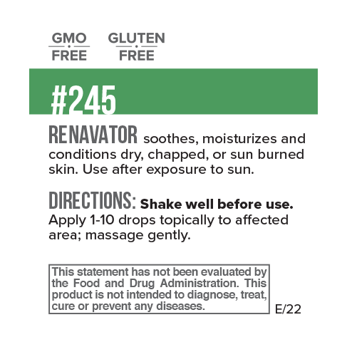 RenaVator is a luxurious blend of healing and moisturizing oils designed to support healthy, radiant skin. This soothing formula deeply nourishes and hydrates, making it an effective emollient for dry, chapped, or sunburned skin. Infused with the restorative power of jojoba oil, aloe vera, vitamin E, and allantoin, RenaVator helps maintain skin elasticity, supports natural repair processes, and promotes a smooth, youthful appearance.