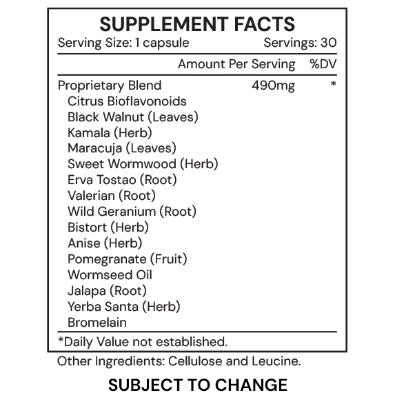 VRM3 is an herbal formula designed to support the body’s immune system and microbiome, specifically targeting the expulsion of microscopic parasitic organisms. It helps the body cleanse unwanted microscopic pathogens from the gastrointestinal tract and encourages healthy gut function.